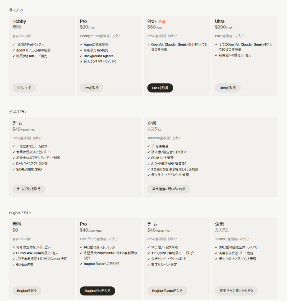 出典:https://cursor.com/ja/pricing(2025/12/15時点)