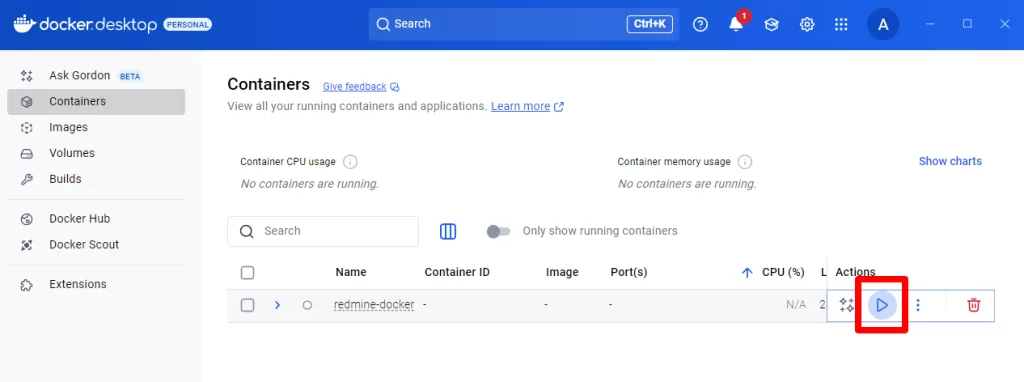 Launch Redmine container