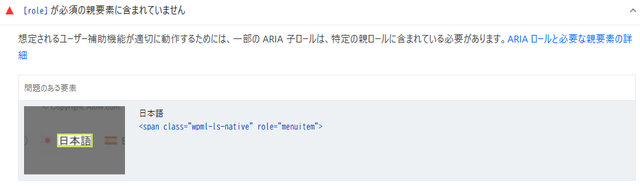 • GTranslate のメニュー要素にも role="menuitem" が残っていない