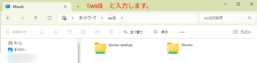 例)ホームディレクトリにwslフォルダを作成して移動する(フォルダ名は任意です)