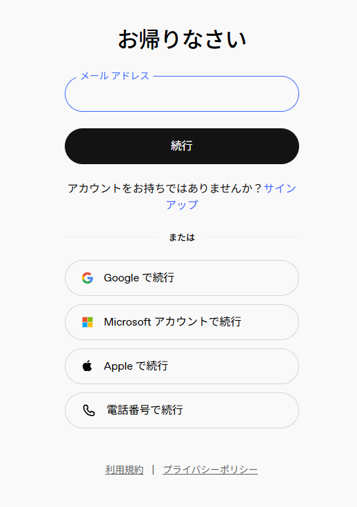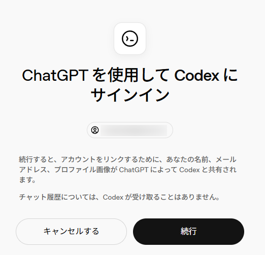 → ブラウザが開き、ChatGPT アカウントでのログイン認証が求められます。