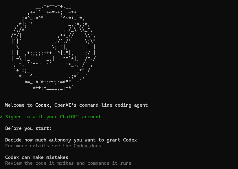これにより、Codex がプロジェクトを認識し、コード編集・提案が可能になります。
